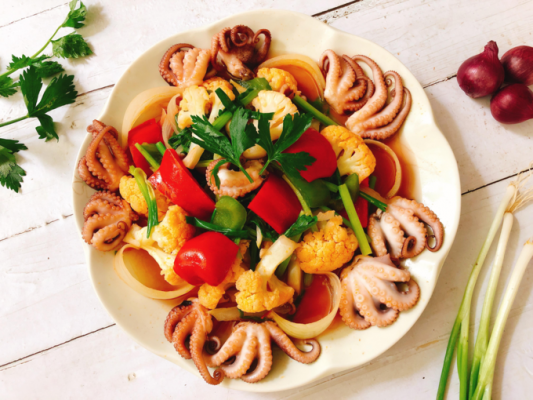 Còn bạch tuộc mang vị tươi ngon, giòn giòn của bạch tuộc kết hợp với nhiều cách chế biến khác nhau chắc chắn cả nhà sẽ thích như: Bạch tuộc sốt tương cà, Bạch tuộc nướng muối ớt, Bạch tuộc nướng sa tế, Canh bạch tuộc nấu dứa…